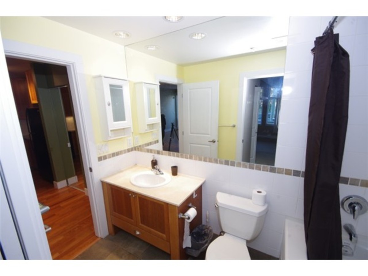 Better than new 700 sqft open and spacious floor plan, massive 200 sqft patio. This unit boasts high ceilings and very large windows making the home airy and bright Kitchen is large with pot lighting, nice countertops and cherry cupboards.The living room and dining room feature hardwood floors. Lots of closet space. Well kept building offers a full exercise centre, a guest suite, underground parking and wheelchair access located within walking distance to shopping, beach, hospitals and restaurants. Secure parking with surveillance system. Great investment property and rentals allowed!