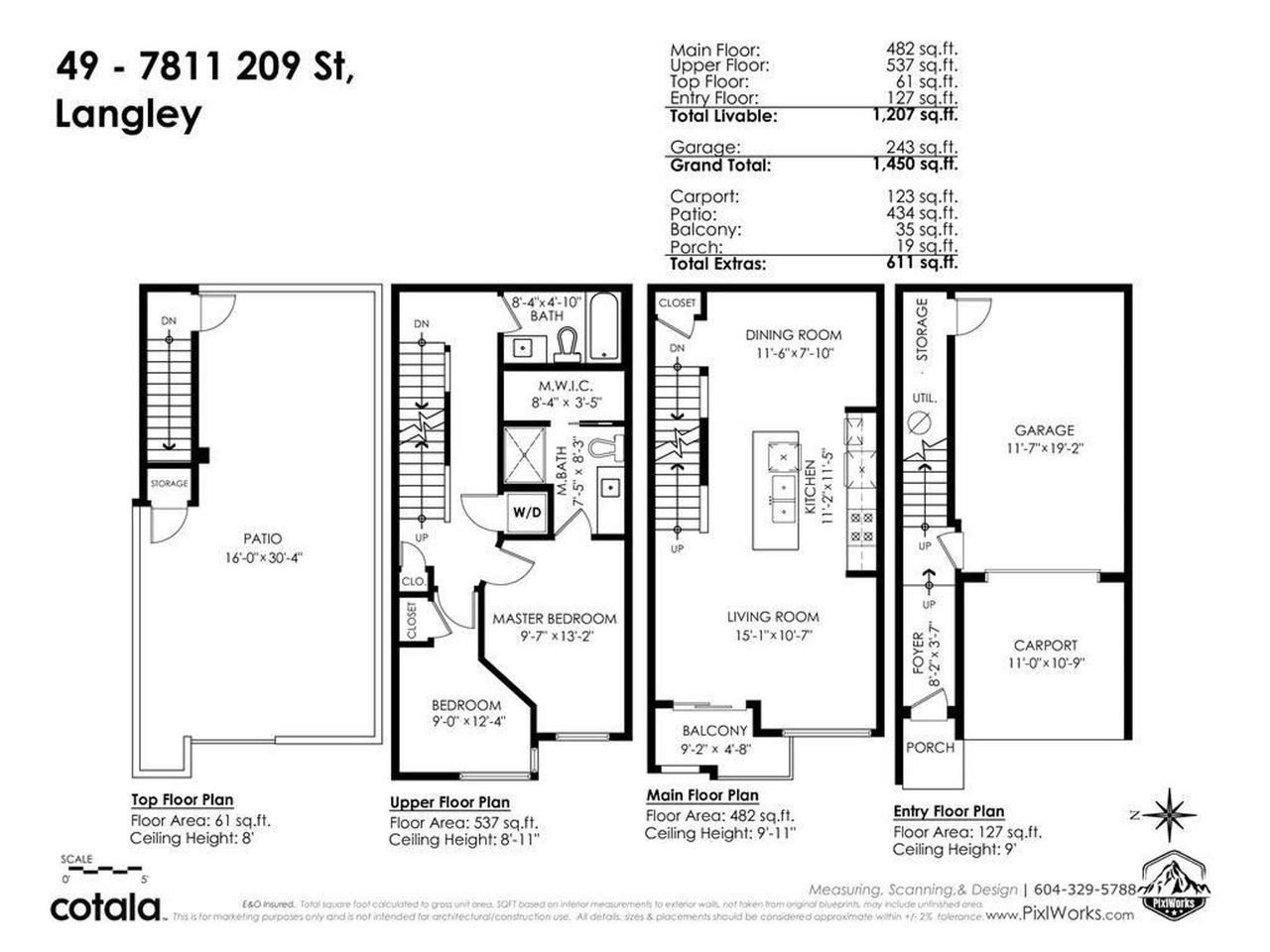 HELLO SUMMER! Welcome to Exchange where you can bask in the sun this summer, relax, and entertain on your 434 sqft rooftop terrace! Complete with gas hook-up for barbeque or cozy outdoor firepit. Bright west facing home has living & dining space on main floor with private bedrooms up on the second level, laminate on the main living levels. The main floor kitchen includes stainless steel appliances, gas cooktop, quartz countertops & island with a sit up bar. Lofty over height 10 ft ceilings on the main level with floor to ceiling windows, allow for plenty of natural light to stream throughout the home. There's even a bonus outdoor space with balcony just off the living room! Very convenient in Willoughby Heights close to the Town Centre, schools, transit, recreation and highway.