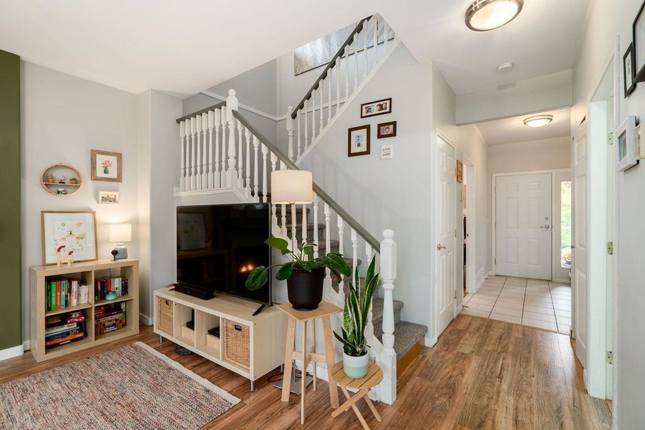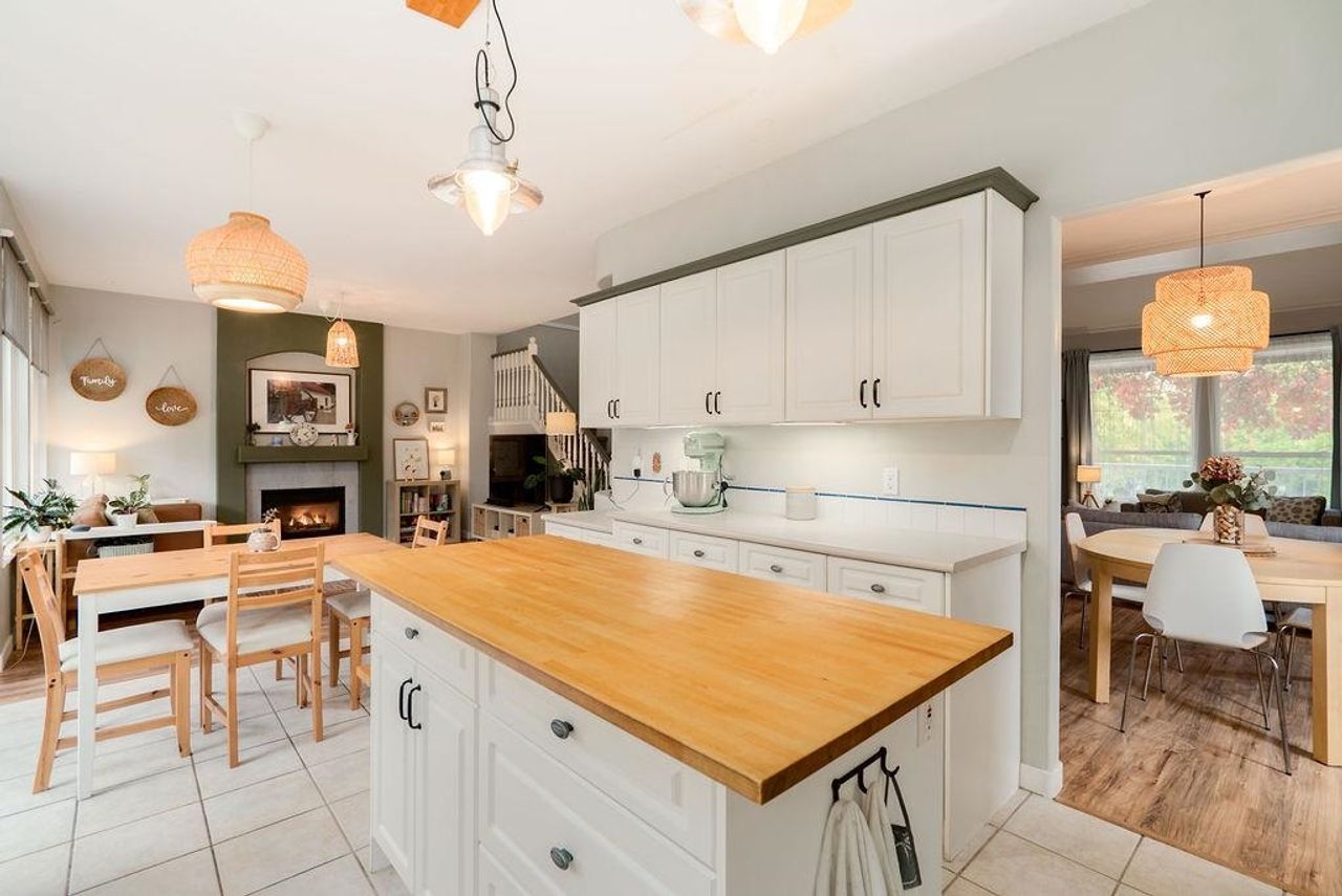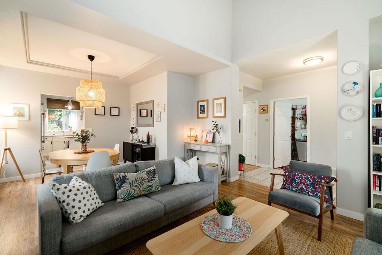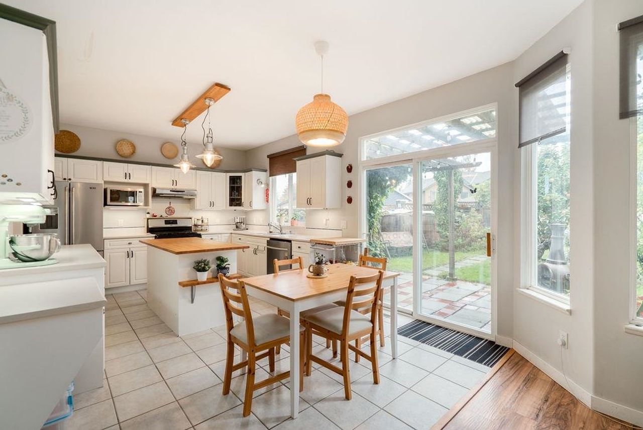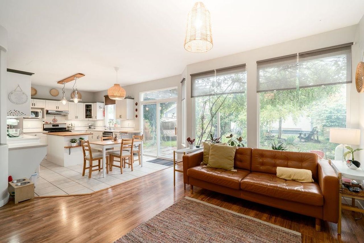 Welcome to this charming 4 bdrm + den home in the family friendly Kanaka neighbourhood. The main floor showcases a formal living rm w/ vaulted ceilings, cozy fireplace & open dining area. A bright kitchen w/ eating nook flows to the spacious family rm, w/ sliding doors opening to your private fenced yard. An oversized den completes the main floor, ideal for your home office. Upstairs features 3 generous bdrms, 2 full baths & laundry. The basement offers partial suite w/ kitchenette, full bath, separate entry, 2nd living rm & bdrm, plus unfinished area for pantry, 2nd laundry or larger kitchen. Fresh paint on main floor, newer HWT & new flooring on main. Double detached garage off lane w/220 power for EV, extra parking/small RV & front street parking. Steps to bus, schools, parks & trails.